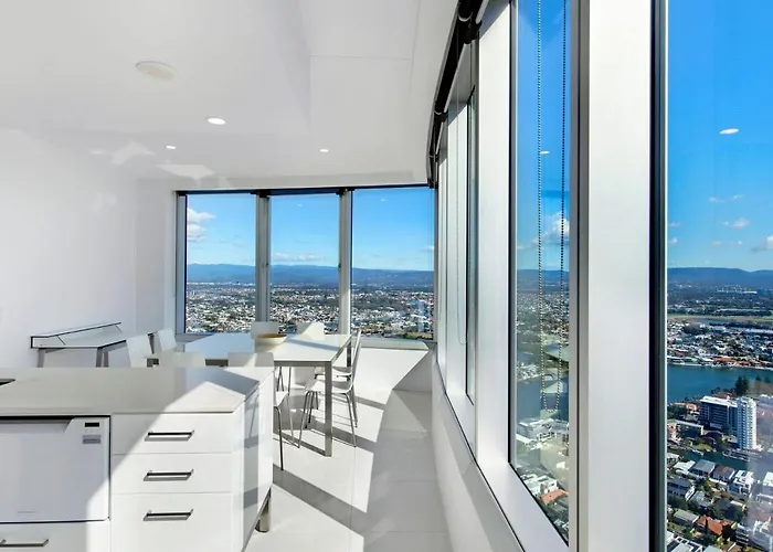 寝室2室のStunning 2 Bedroom Ocean Views Apartment - Coasthm ゴールドコーストはゴールドコーストの活気のある場所に位置し、シェブロンルネッサンスショッピングセンターから歩いて15分以内です。 スカイポイント展望台すぐ近くに位置するこの家族向けのアパートは、都市の景色を見渡せるサンデッキを提供しています。